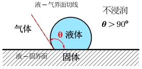毛细效应的产生源于固体管壁表面分子与液体分子之间的相互作用。如果液体的表面张力不特别大,而固体表面对液体分子的吸引力又较强,那么液体分子就比较容易被固体表面吸附。宏观表现出来就是当把液体滴在固体表面时会铺展开来,形成一个扁的球冠。此时液体-气体界面和液体-固体界面的夹角(接触角)小于90°,这种情况称为“浸润”。反之如果液体分子感受的表面张力比固体表面的吸附力量大很多,那么滴在固体上的液体就会在表面张力作用下趋向形成一个球缺,液体-气体界面和液体-固体界面的夹角(接触角)大于90°,这种情况称为“不浸润”。