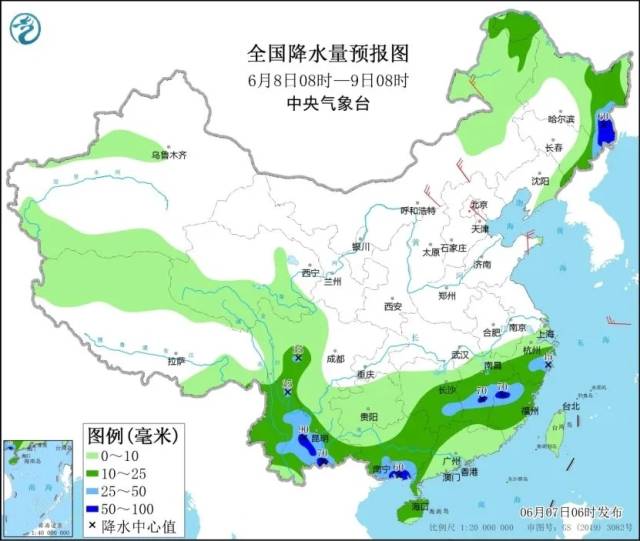 6月8日—9日全国降水量预报图。中国气象局供图