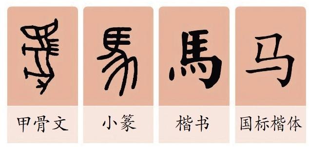 马,在中国文化中源远流长。甲骨文里就有“马”字,描绘出了马的关键特征:大眼睛、长鬃毛,四只蹄子,还有一条长尾巴。后来逐渐演变成了楷书的“馬”。汉字简化时,人们又把它写成了现在的“马”,最明显的变化是代表蹄子的四个点连成了一条线,这样只需要一笔就可以完成了。
