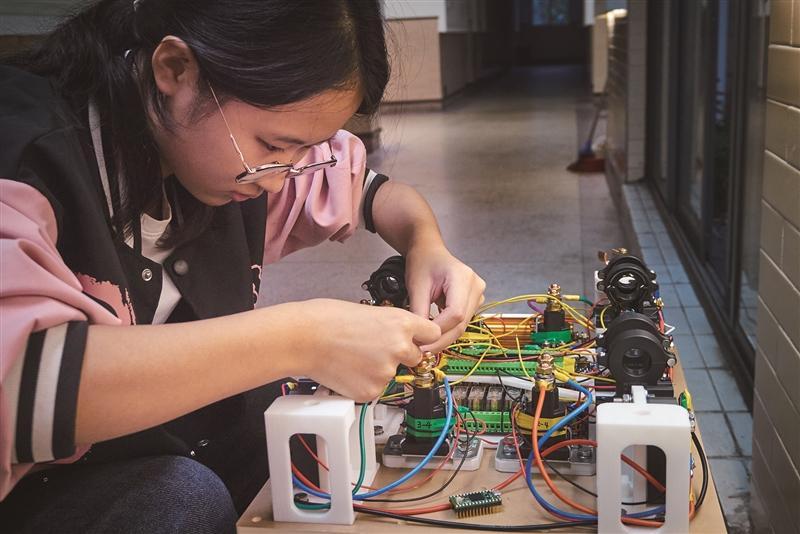 指导教师王老师表示,这项优秀作品背后,有学校、老师和家长的支持,更离不开学生们自己的努力。一份热爱让孩子们在繁忙的学习之余,还来到社团教室进行发明制作。回顾这段忙碌又充实的日子,邵子诚满足地说:“能够有这些经历,也算是人生中的一大幸事!”