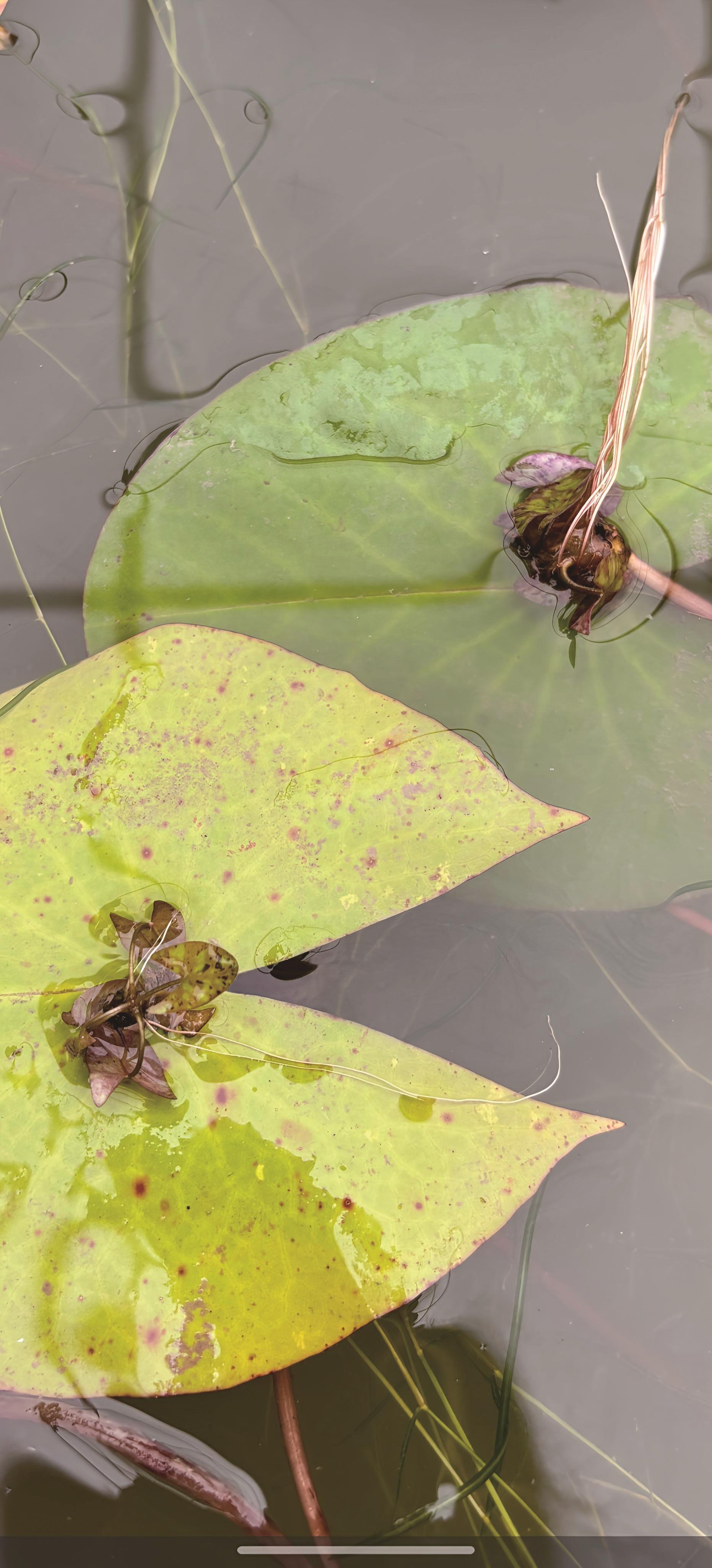 胎生苗,其实就是这片睡莲叶子“怀孕生子”了。老叶片中央的小苗子,就是它的“孩子”。“孩子”通过叶柄从叶子里吸收营养,慢慢长大。等老叶片完全腐烂,小苗子就会离开母体顺水漂流,遇到合适的环境便扎根定居,长成新的睡莲。
