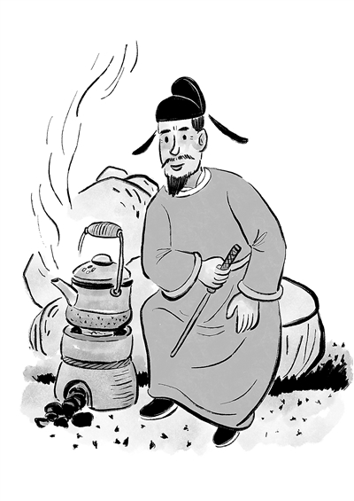 第二次,是王维在“终南别业”休假。朋友裴迪到终南山求见王维。王维亲自为裴迪沏茶,裴迪“赶忙欠身”为王维续茶,两人相视一笑,十分默契,随后安安静静地坐下,推心置腹地谈天说地。