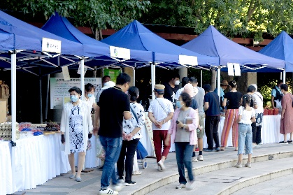 秋风送爽,热闹“华侨”。8月27-28日,“北京农业在社区”主题公益活动在朝阳区华侨城2号院举办,共有14家涉农主体参展,“古船”大米、红螺食品、“京城老鱼”小龙虾、“凯诚”油鸡蛋、赵家务大葱等农产品受到了消费者的青睐。此次活动还邀请了北京农业科技大讲堂的蔬菜园艺专家现场为市民解答阳台园艺的疑难问题。