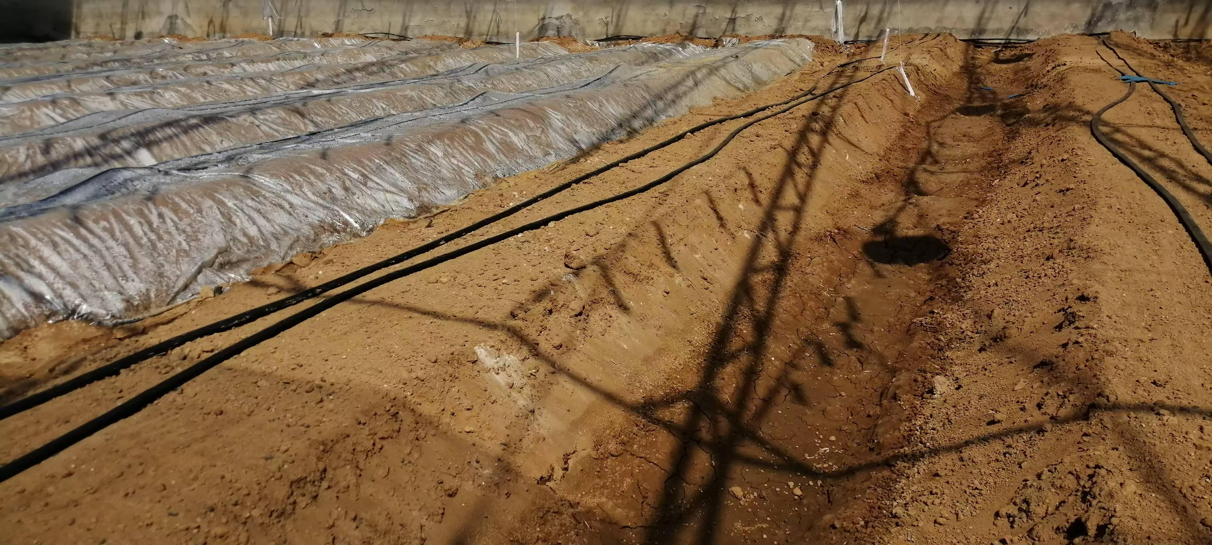 清洁田园后,施入充分腐熟的农家肥7~10立方米/亩或商品有机肥2500~3000公斤/亩,耕翻做畦,栽培畦规格为台式小高畦,上台面宽50~60厘米、下台面宽70~80厘米,沟宽70~80厘米,畦高25~30厘米,之后铺设滴灌带(注意检修灌溉系统)并覆膜封棚提温。