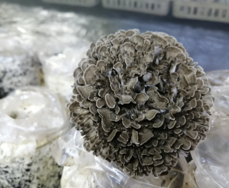 栗蘑八成熟采收商品要求:子实体新鲜,菌盖外缘无白色的生长环,边缘变薄,菌盖平展,颜色呈浅灰色或灰白色,菌柄和菌盖背面见有微小菌孔层,但距盖缘 1cm 处尚无菌孔出现,子实体尚幼嫩时采收。