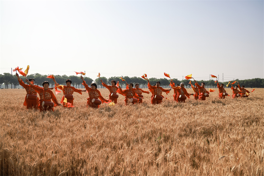 丰收的锣鼓敲起来,顺义区把乡村大舞台办进了麦田欢声笑语庆丰收 赵启娴 摄