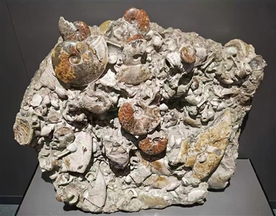 图1为菊石类、双壳类、腕足类和腹足类软体动物集合体化石。