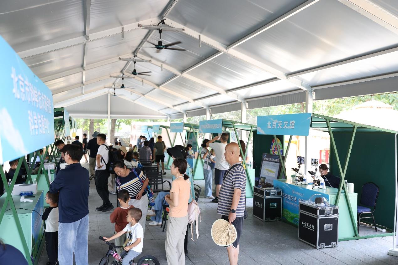 活动还设有科普观影与游戏专区。国家自然博物馆、北京天文馆球幕影院放映《地球上的狂骑》《生命的起源》《黄道十二宫》《天上的宫殿》等科普影片,深受孩子们喜爱。科学传播中心与麋鹿中心推出知识闯关类科普游戏,让公众在娱乐中学习。麋鹿中心同步开展“夜探麋鹿苑”“小小饲养员科普体验”“科普自驾游”“科学探索基地”“文创市集”等活动,进一步丰富公众参与体验。