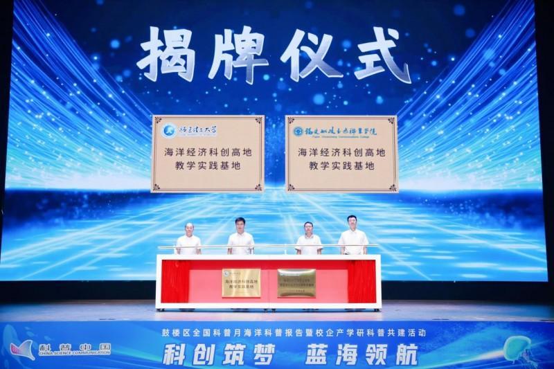 在随后举行的校企共建教育及实践基地揭牌仪式上,福建理工大学智慧海洋科学技术学院党委书记王强、福建船政交通职业学院安全与环境学院院长陈明仙和鼓楼区科协主席林锋、鼓楼区国投集团董事长陈伟共同为“海洋经济科创高地教学实践基地”与福建船政交通职业学院“安全与环境学院实践教育基地”正式揭牌,象征着鼓楼区通过校企合作模式开展科普教育事业的全新探索。