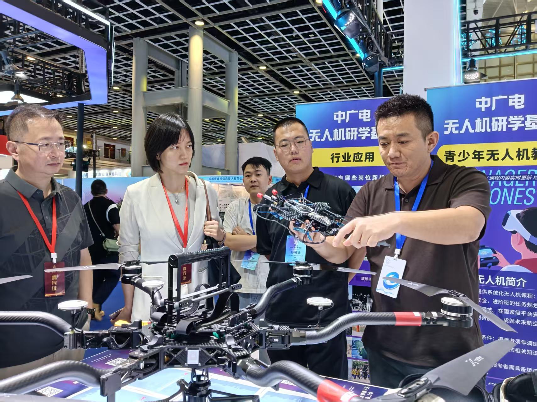 在视听装备和内容的交流迭代上凸显“新”。展览突出视听领域技术的迭代更新,从4K到8K,从标清到超高清,从3D到裸眼3D再到眼跟踪裸眼3D,从智能2D电视到AI立体电视频道,从复述性数字人到“速问速答”型数字人,从多家横竖屏轻量化摄录一体机到总局三院带来无人机摄录机,视听装备的迭代令前来参观的老一代电视人直呼“震撼”。江苏馆、上海馆、江苏移动、有维科技等展位的AI沉浸式大空间体验区吸引了一批批的观众,争相排队参与体验。“知天下”把展会开始前三天新鲜出炉的AI沉浸式体验秀“云中漫步中国”带到展会现场,这是由AI重建的高保真数字中国,参与者仿佛踏上一场跨越山河的沉浸之旅。本次展会上启动了江苏卫视4K超高清的开播,9月28日,江苏、上海、安徽、浙江三省一市同步上线4K超高清频道,从此坐在家里就可以欣赏到至美画面、体验超强视听。