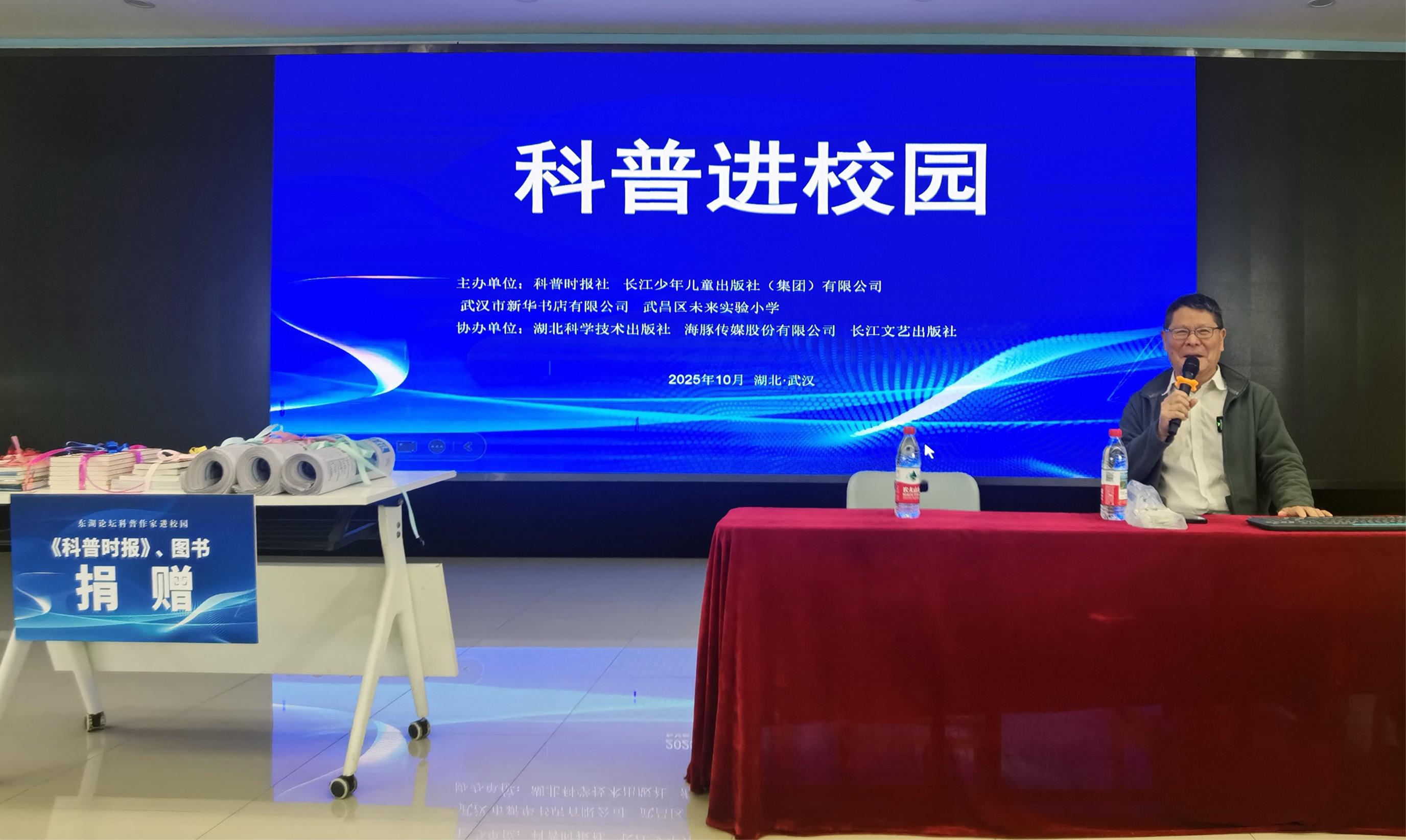 10月14日,科普作家郭耕走进位于湖北省武汉市的武昌区未来实验小学,他从自己所著的《动物与人那些事》一书出发,为同学们带来了一场以“生态生命生活”为主题的生动科普分享。