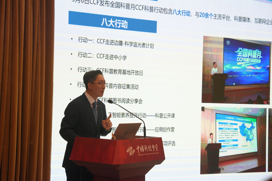 近日,由中国计算机学会(CCF)主办的首届“全国科普月-CCF科普行动”总结会在中国科技会堂举行。自9月6日启动以来,历时一个多月的科普行动取得了丰硕成果,点燃了全国各地青少年和公众的科学热情,显著提升了全民科学素养。中国科协科普部副部长任海宏出席并发表总结致辞,对CCF科普月的工作给予了高度肯定。