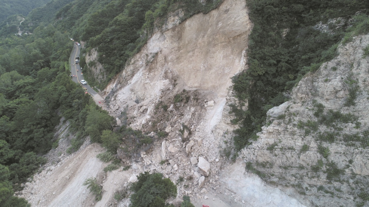 我立即明白了眼前发生的情况,“那是公路边坡发生了垮塌,垮塌下来的堆积物堆到了路中间,造成了堵塞。看来,是在坡体垮塌前及时封了道路。不然,这场自然灾害就令人痛心疾首了。”