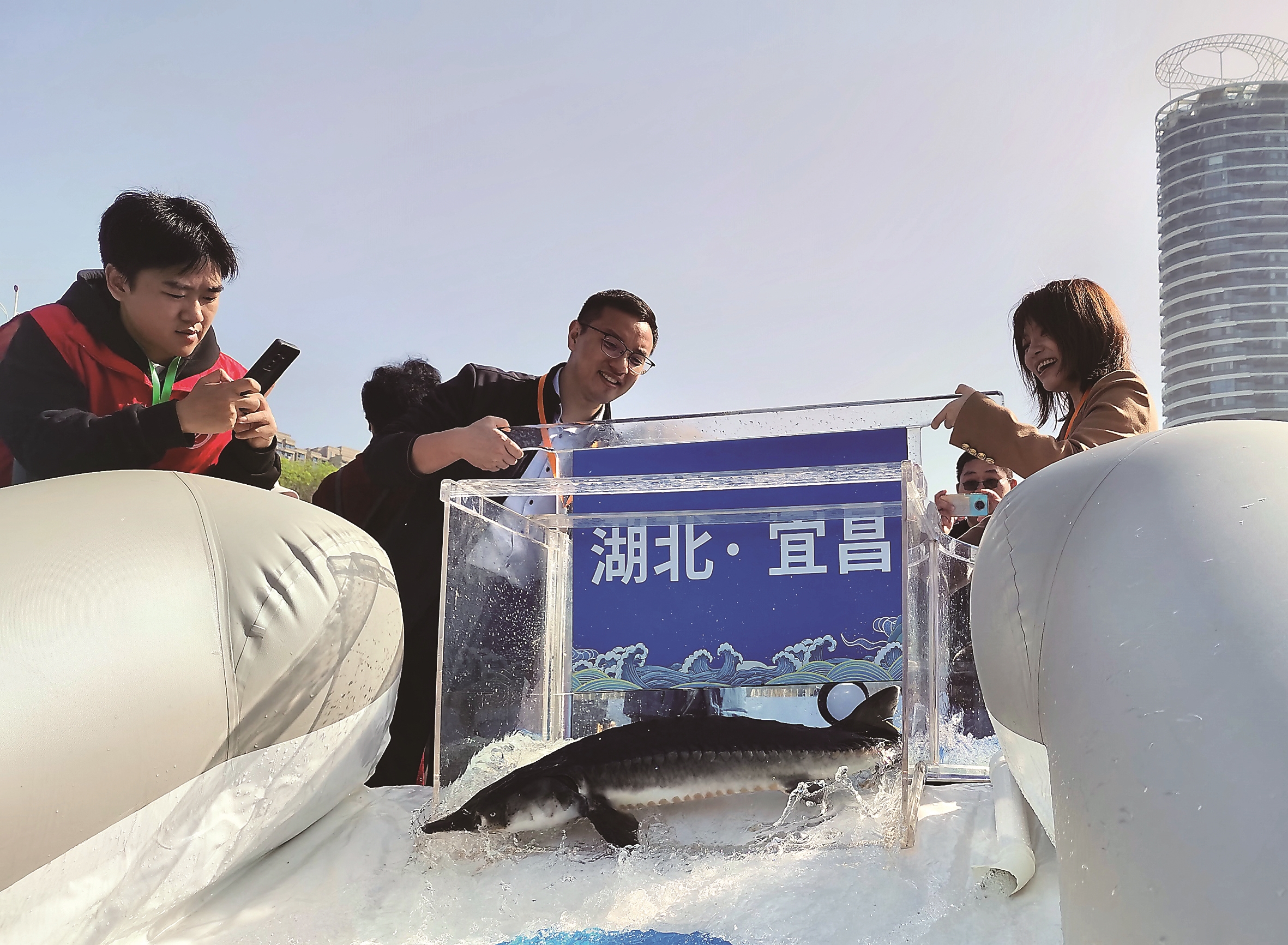 中华鲟是国家一级保护野生动物,距今已有1.4 亿年历史,有“水中大熊猫”和“活化石”之称。中华鲟是检验长江生态系统健康状况的重要标志之一,实施增殖放流对补充中华鲟自然物种有着重要意义。