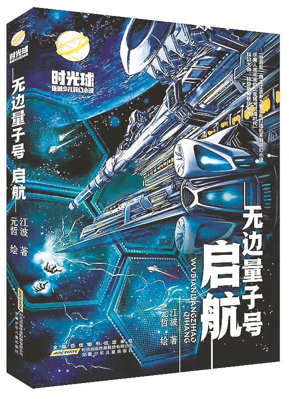 跟着少年们的目光,我们可以看到“无边量子号”外形像30千米的“法式长棍”,两侧伸展出许多小支架,又像放大了上亿倍的草履虫。跟着少年们走进内部,可以看到能激活暗物质的空间驱动引擎、威力巨大的等离子主炮、灵活多变的小精灵飞行器……这些充满想象力的宏大设定,以及科学的细节,仿佛把读者带到了一艘真实的巨型飞船上。