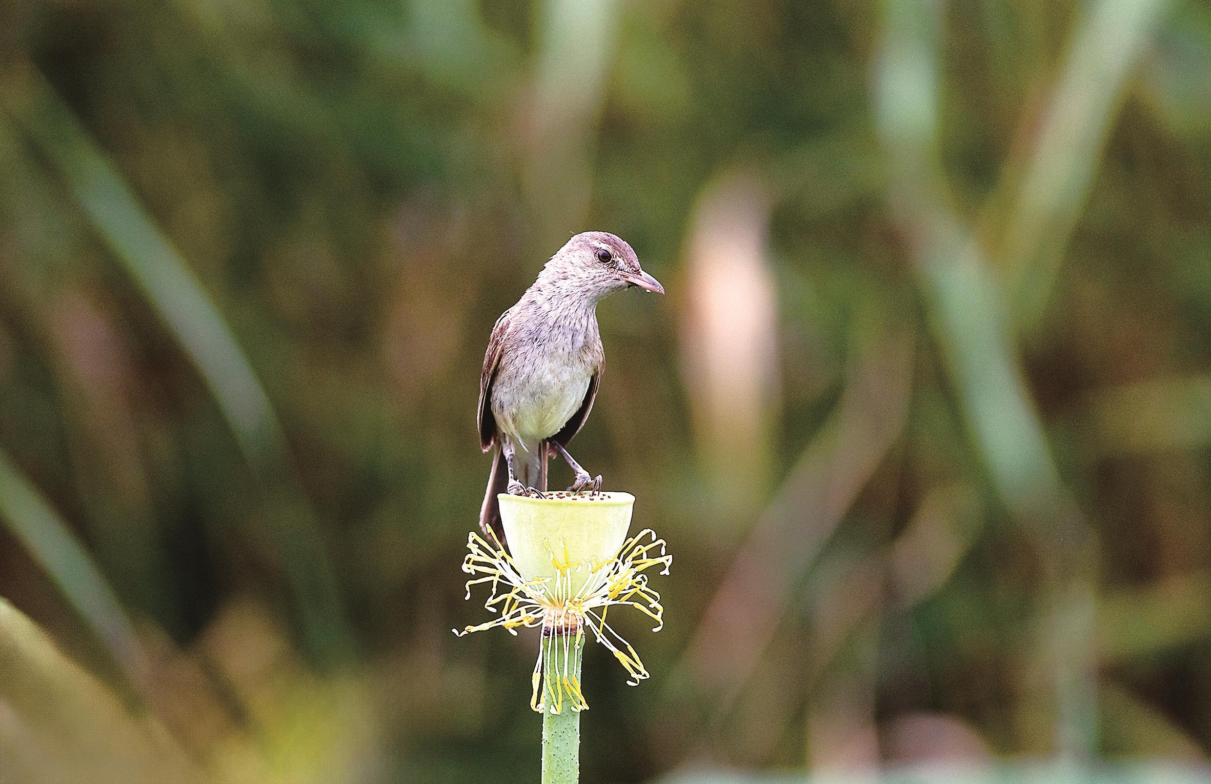 近日,笔者在北京永定河畔,偶遇鸟类“歌唱家”大苇莺,只见其借力荷花,或站立高歌,或驻足休憩,或观察四周,一幅“鸟与脱落的荷花”的美丽画面现于眼前。
