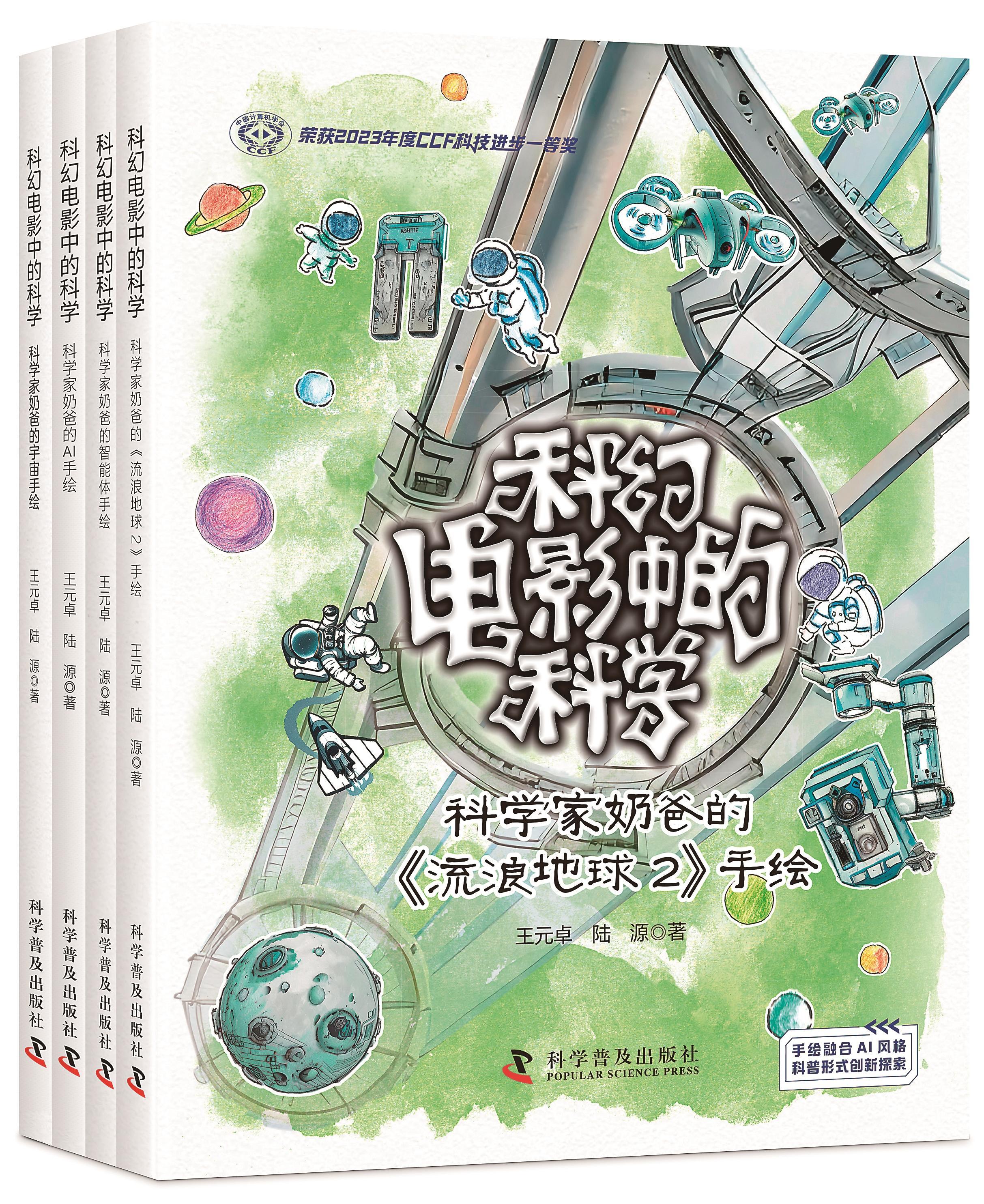 很多朋友发信、留言希望我能够把为女儿手绘科普讲解图的事情继续做下去,帮助更多的孩子启蒙科学知识。于是历时5年,我手绘完成了《科学家奶爸的宇宙手绘》《科学家奶爸的AI手绘》《科学家奶爸的智能体手绘》《科学家奶爸的<流浪地球2>手绘》4本“科幻电影中的科学”系列图书,讲解了《流浪地球》《流浪地球2》《星际穿越》《火星救援》《钢铁侠》《阿凡达》《头号玩家》《瓦力》《超能陆战队》《三体》10部经典科幻影视作品,从观众感兴趣的故事情节链接到相关的科学知识,形成了100个知识点的知识图谱体系。