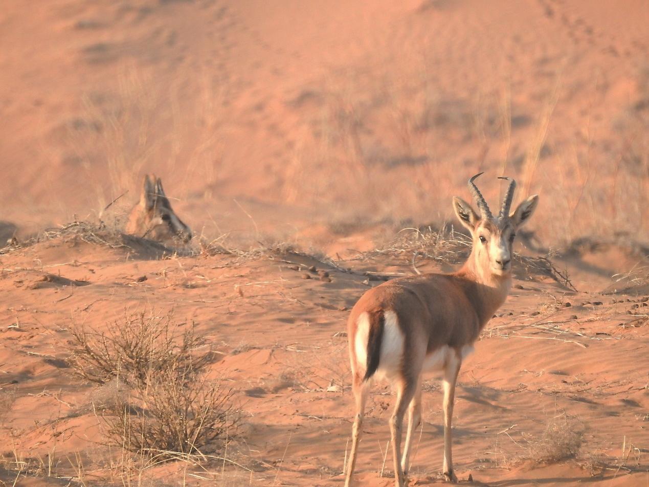 调查还发现,鹅喉羚对环境非常挑剔,它们只栖息于那些经过长期治理的沙漠,而对那些刚刚扎上草方格,还在治理、恢复中的沙漠则是“敬而远之”。