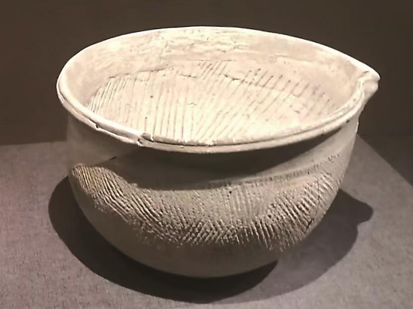 早期陶器因为是露天烧造,黏土中含铁量较高,所以器物基本都是三价铁离子呈现的砖红色。