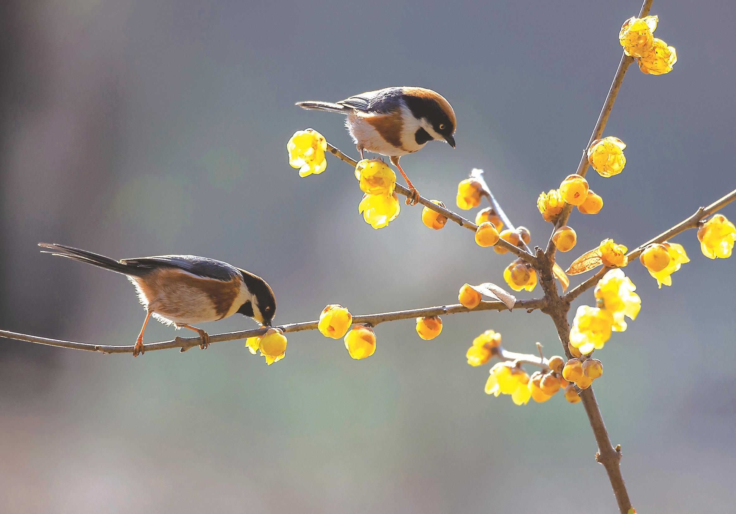 黄庭坚的《戏咏蜡梅》诗自注:“京洛间有一种花,香气似梅,亦五出而不能晶明,类女功撚(niǎn)蜡所成,京洛人因谓蜡梅。”苏轼则在《蜡梅一首赠赵景贶(kuànɡ)》中写道:“天工点酥作梅花,此有蜡梅禅老家。蜜蜂采花作黄蜡,取蜡为花亦其物。”在他们的笔下,蜡梅仿佛是蜜蜂采花制蜡,经上天精心雕琢而成的艺术品。自此,“蜡梅”不仅成了它的名字,更生动地传达出那清透润泽的质地与馥郁甜美的香气。