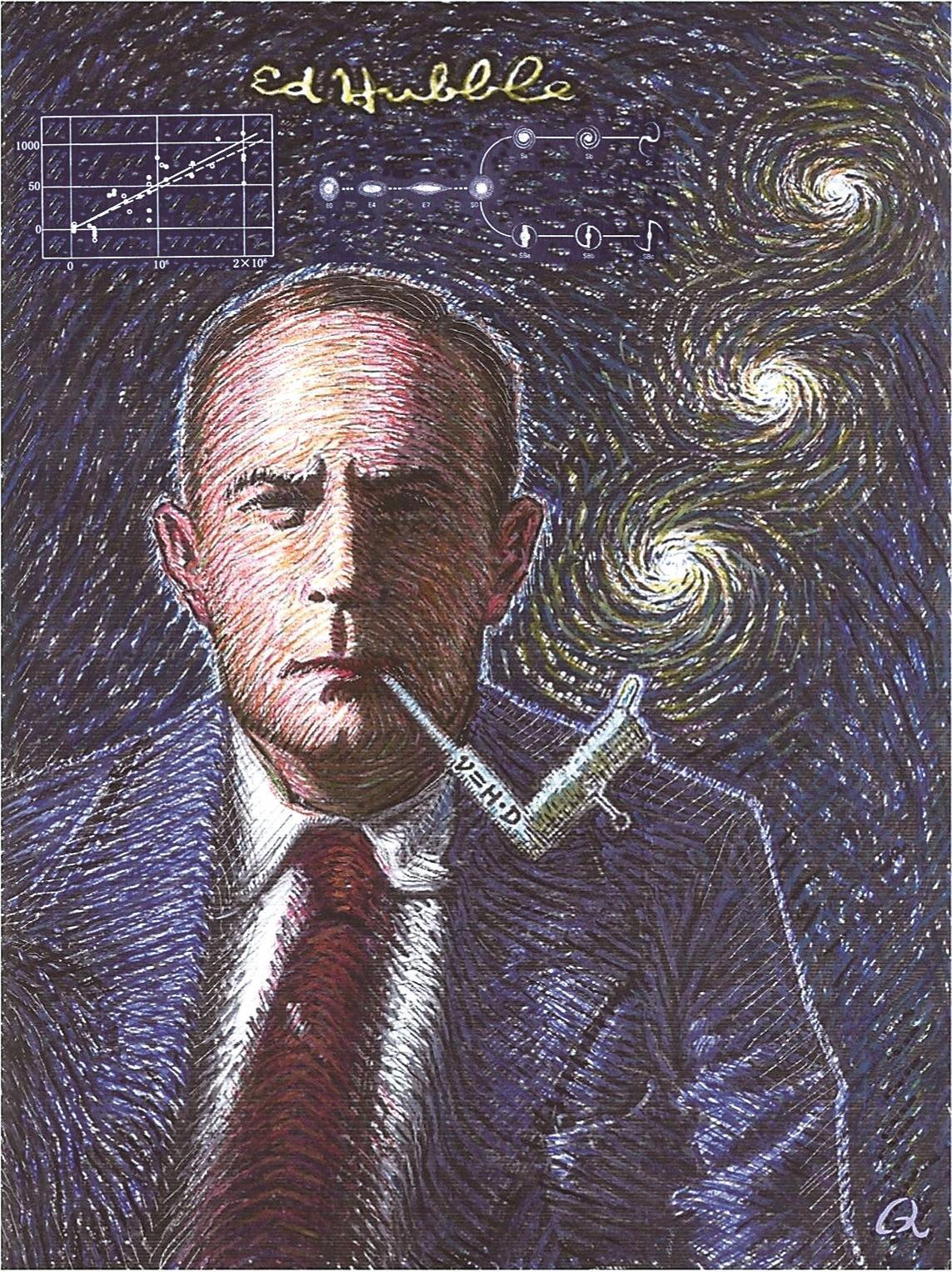 哈勃制作了人类历史上第一架空间望远镜——哈勃望远镜。它成功地证明了暗能量的存在,测定了宇宙膨胀速度。对于20世纪天文学和宇宙学,哈勃作出了两个重大贡献:一是确认河外星系是与银河系相当的恒星系统,由此他成为第一个对星系分类的人;二是发现了星系的红移-距离的线性关系,即哈勃(后改为哈勃-勒梅特)定律。