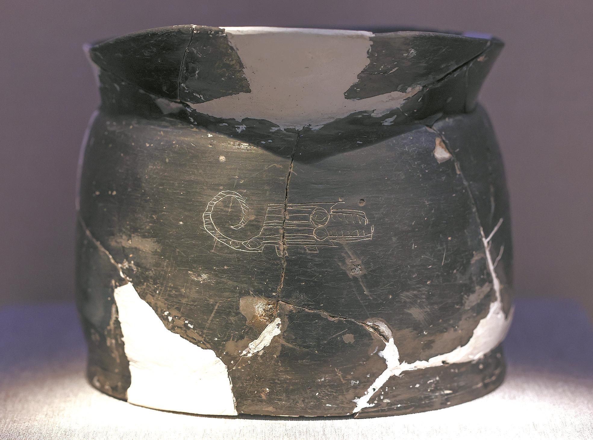 出土于杭州市余杭区南湖遗址的刻符陶罐,虽然用料工艺都很简单,却胜在完整。在它表面刻有十二个意义非凡的符号,古文字学家找到了和甲骨文中“钺(yuè)”和“虎”字造字逻辑几乎相同的符号,其中“钺”的形象,还同样出现在上海松江广富林遗址出土的陶尊上,以及同时期苏州澄湖遗址出土的贯耳壶上——简略版的“石钺”,两者之间的关系就犹如汉字繁体与简体一般,一体两面。虽然这些刻符与甲骨文的逻辑甚至少量字体都很“形似”,但如果用甲骨文的解读逻辑去生搬硬套它们内在含义,显然不具备说服力。