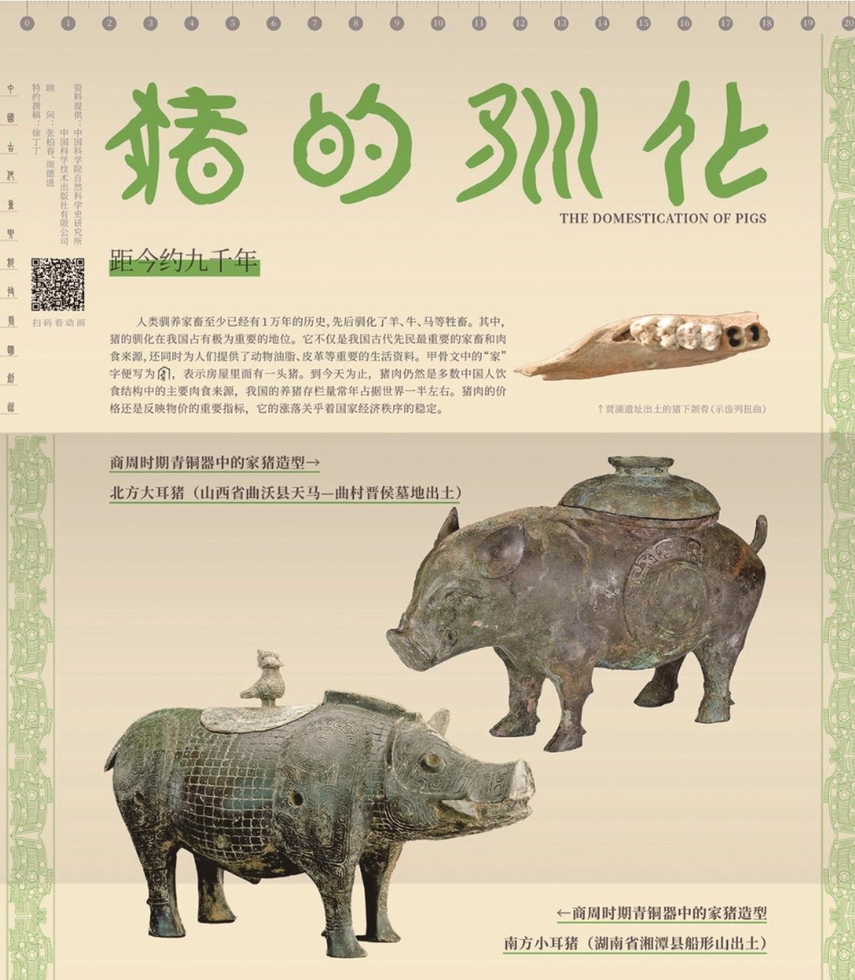 人类驯养“六畜”至少已有上万年历史,先后驯化了鸡、狗、猪、羊、牛和马等牲畜。其中,猪的驯化在我国占有重要地位。它不仅是我国古代先民最重要的家畜和肉食来源,还同时为人们提供了动物油脂、皮革等重要生活资料。