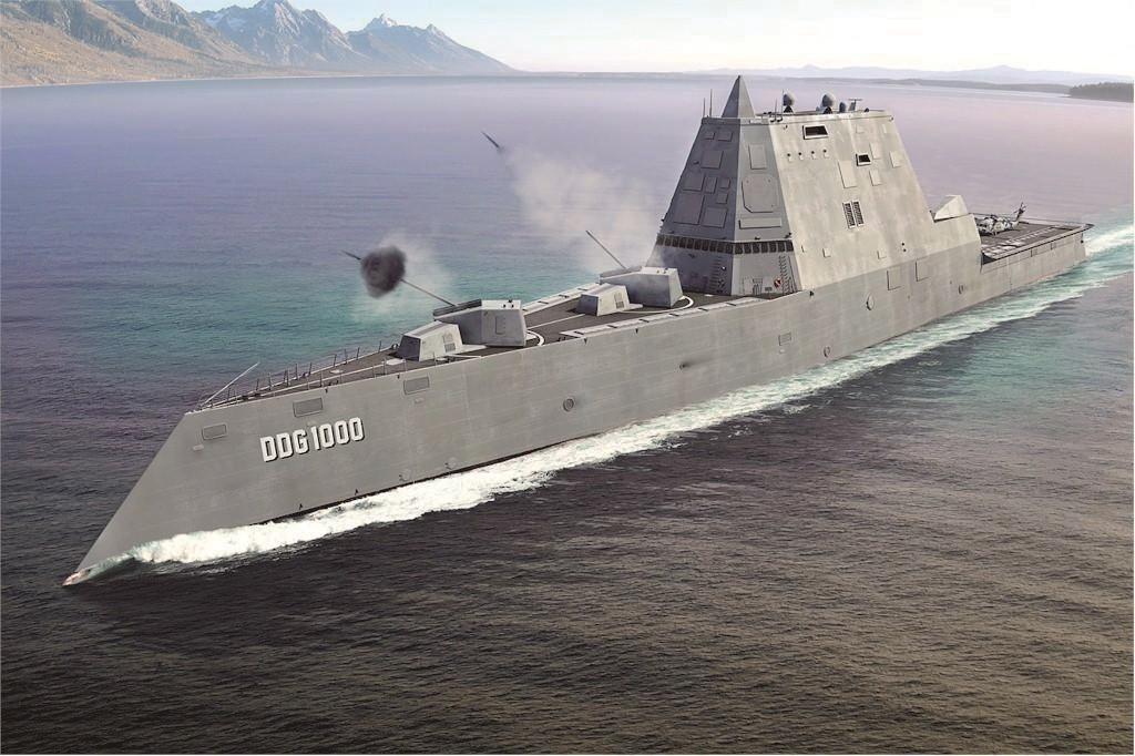“朱姆沃尔特”级驱逐舰是美国海军新一代多用途驱逐舰,满载排水量14564吨,已经达到了巡洋舰的标准。但如此“庞然大物”的雷达反射截面仅与一艘小渔船相似,为传统驱逐舰的1/64。