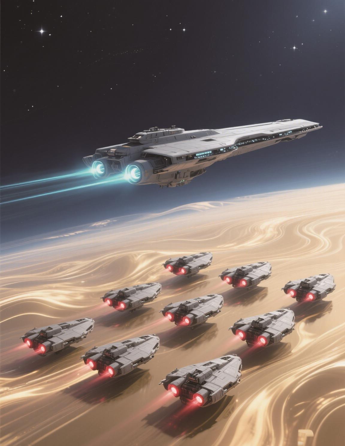重返太空计划启动的百年后,近地轨道船坞中的“跳膜”舰队正式集结完毕。其中领航舰“启明号”格外与众不同——在其扁平的舰体底部,覆盖着由超导材料编织的巨型引流矩阵。