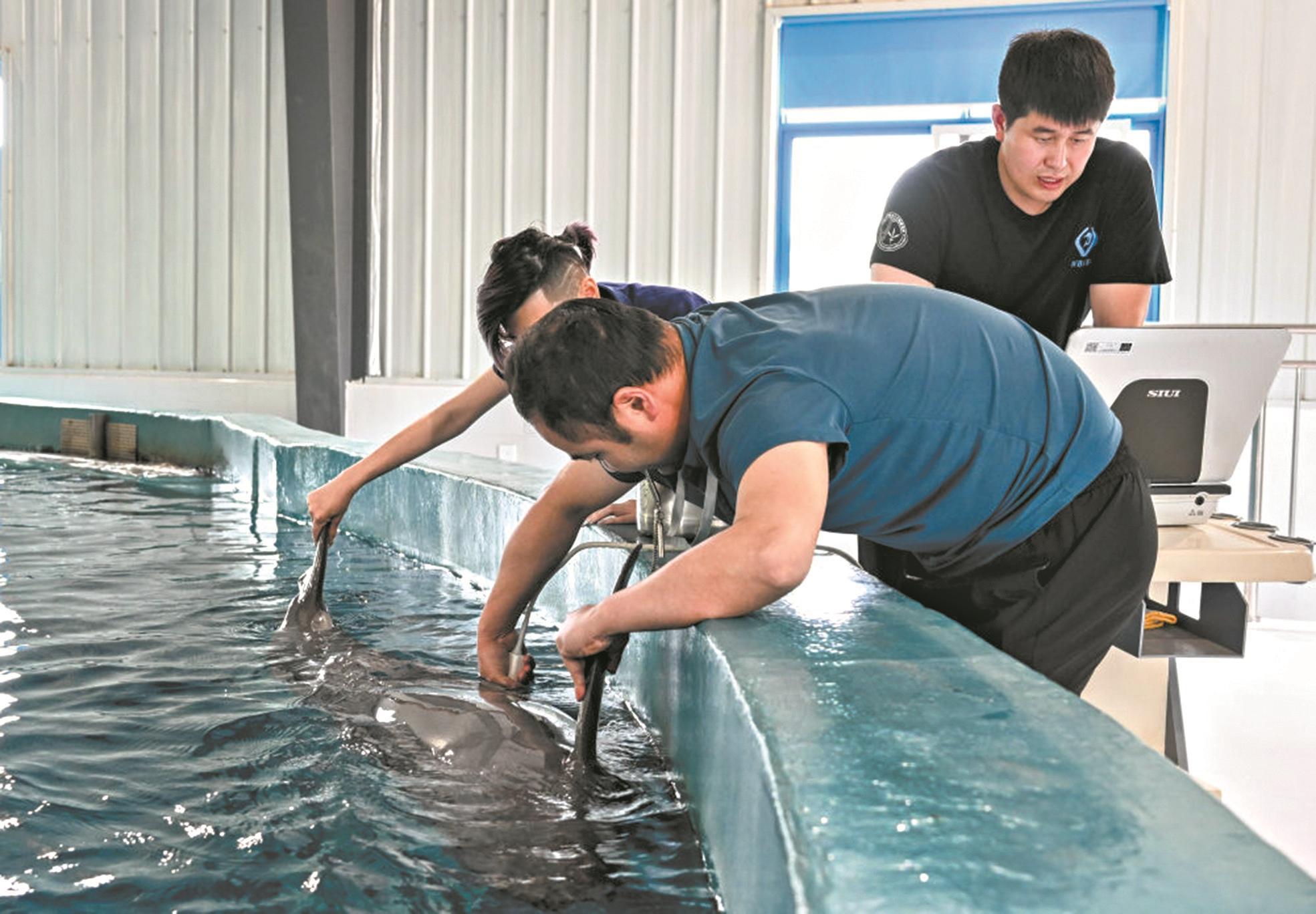 “目前,长江江豚人工繁育技术获重大突破。我们在武汉成功开展了雄性长江江豚的精液采集,建立了全球首个珍稀濒危淡水鲸类精子库。这个精子库将为长江江豚的全人工可控繁育奠定重要基础。”中国科学院水生生物研究所长江江豚繁育研究中心主任郝玉江在接受科普时报记者采访时说。