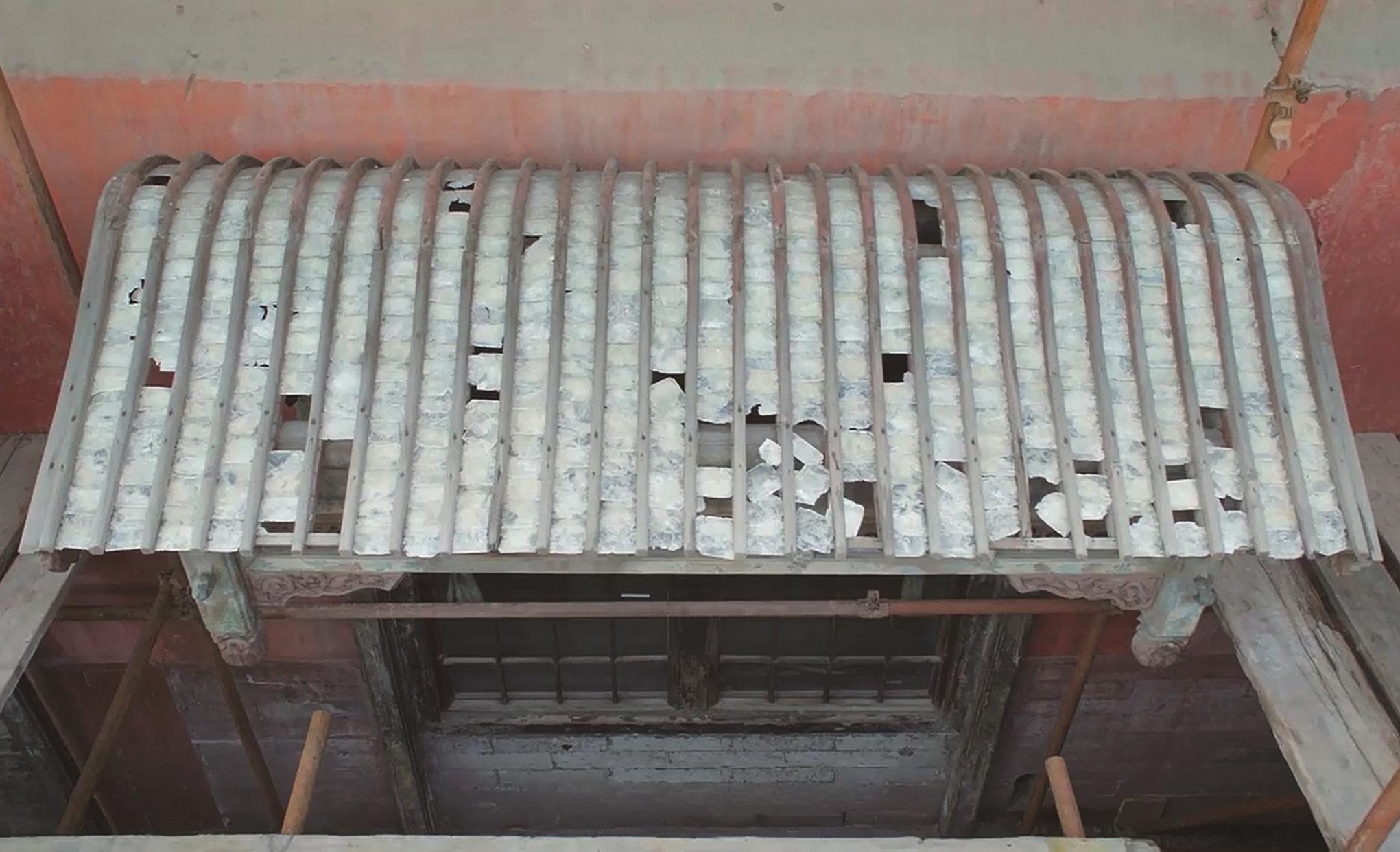 从建筑学角度看,“阳光房”指的是能够充分接纳光照的建筑空间。现代阳光房通常以玻璃作为屋顶和墙面,让光线自由洒入。而在养心殿东暖阁的后檐,其实也隐藏着一处“阳光房”——一座铺有上千片透光“明瓦”的雨棚。