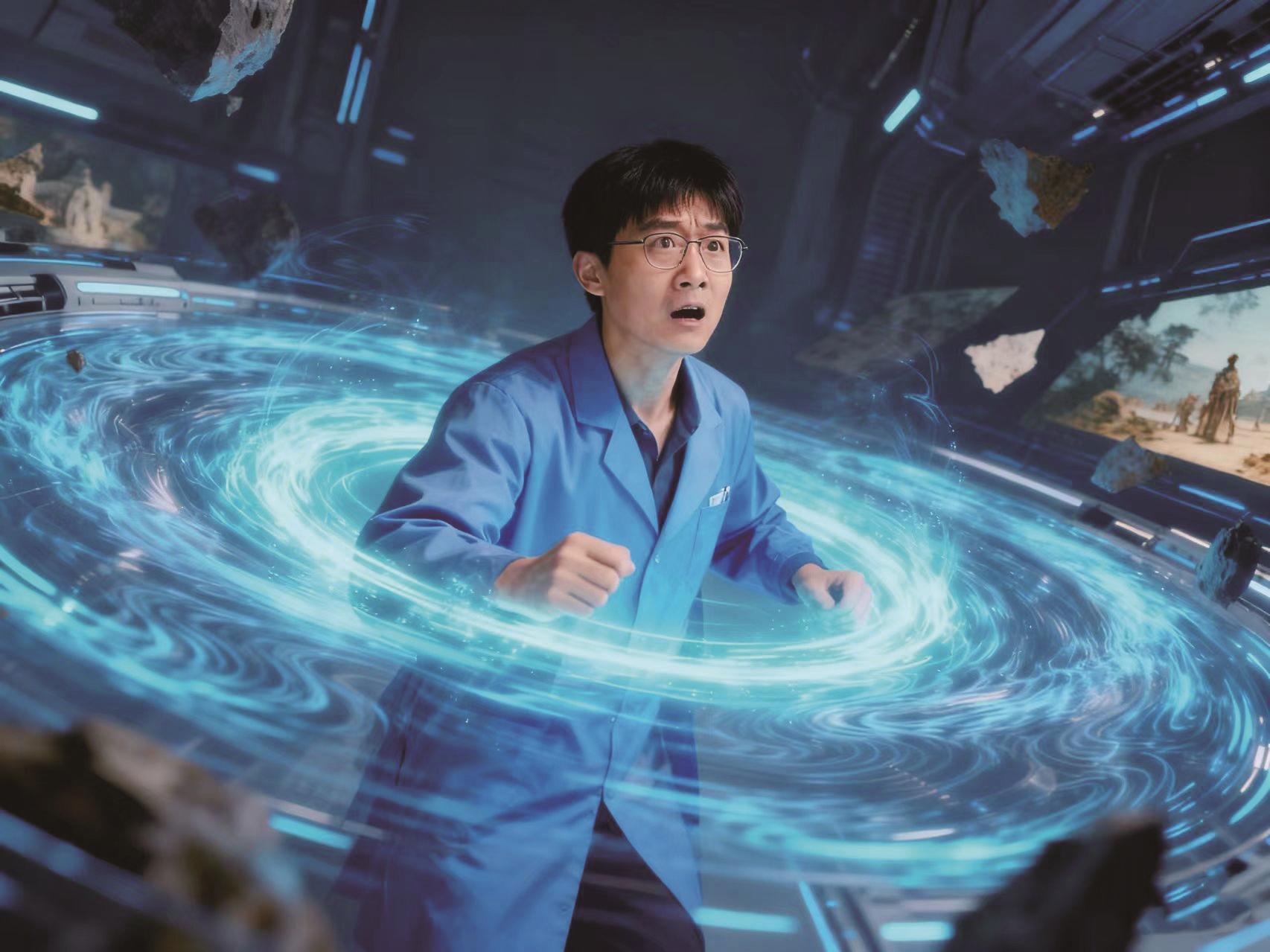 几纳秒后,彩风冲出量子隧道,钻入时空气泡。在虚实交替的量子潮汐中,无数个平行宇宙中的“彩风”,经由上万次试验,奔腾在解救女儿的路上。他逆向穿行于量子潮汐,回到实验室爆炸前的一刻,囡囡的身影就在眼前。