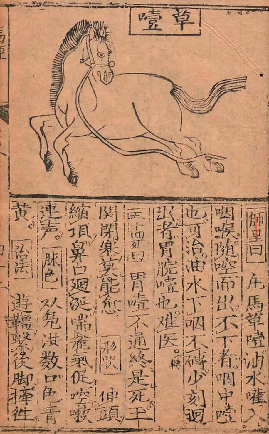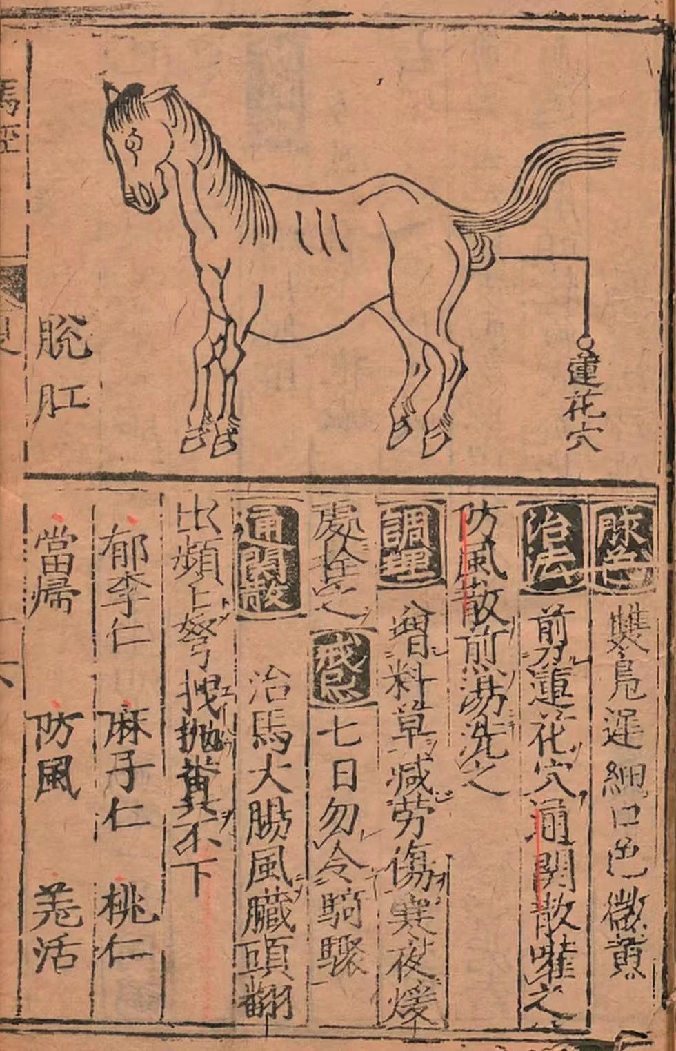谈及马文化,便不得不提一部凝聚着传统兽医学智慧的经典——《元亨疗马集》,笔者收藏的清刻本,更让我们得以触摸这份跨越百年的科学传承。这部著作由明代喻仁(字本元)、喻杰(字本亨)兄弟合著,自万历戊申年初梓以来,便成为兽医界的经典范本,更流传至日韩、欧美等地,影响深远。《元亨疗马集》将马病分为36起卧、72症,每一种病症都有详尽的病因分析、症状描述与治疗方案,更辅以图示、歌诀便于记忆。从“直讲十二论”的诊断方法,到“七十二大病”的对症施治,从针灸技巧到方药配伍,喻氏兄弟以实践为基础,将感性经验升华为系统的医学理论,这种“实证探究”的精神,正是传统科学的精髓所在。书中“脉色论”“八证论”等篇章的独到见解,300余方的实用价值,至今仍具有重要的参考意义,彰显着中华先民“格物致知”的科学追求。