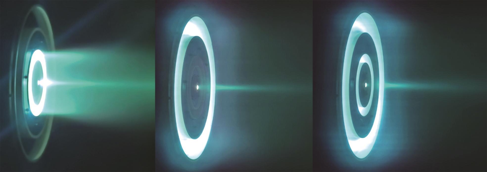 同时,霍尔推力器还具有高比冲优势。比冲是用于衡量火箭或飞机发动机效率的重要物理参数,工程上习惯用秒表示,化学推进的比冲为200-300秒(固态燃料),霍尔推力器的比冲是它的5至10倍,相当于可以少带5至10倍燃料。除了减少燃料的携带量外,霍尔推力器还有“四两拨千斤”的能力。比如,在中国空间站上装载的四台国产霍尔推力器,虽然每台推力只有80毫牛,但却能在几乎没有阻力的太空环境中,对百吨级的航天器进行姿态的精细调整,保障空间站在轨道上平稳运行。